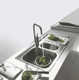 | Additional Features: | Semi Integrated waste outlet, main bowl plus auxiliary bowl, Integrated sealing strip |