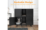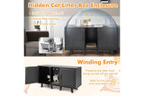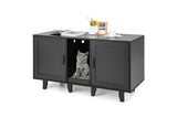 Costway Wooden Cat Litter Storage Cabinet Double Door Cat House w/Scratch Pad Black