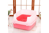 Large Deep Cat Kitty Litter Tray High Wall Pet Toilet Tray With Scoop Pink