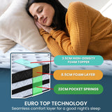 Euro top designAllows even distributionIndependent pocket spring mattressSoft quilting layer for optimum comfortAir mesh fabric sides to facilitate air flow in the mattressHypo-allergenic material - dust mite & mould resistantPocket spring system to create the perfect feelLuxury knitted jacquard fabricHighly breathability offers a cooler sleeping surfaceNatural deodorisation