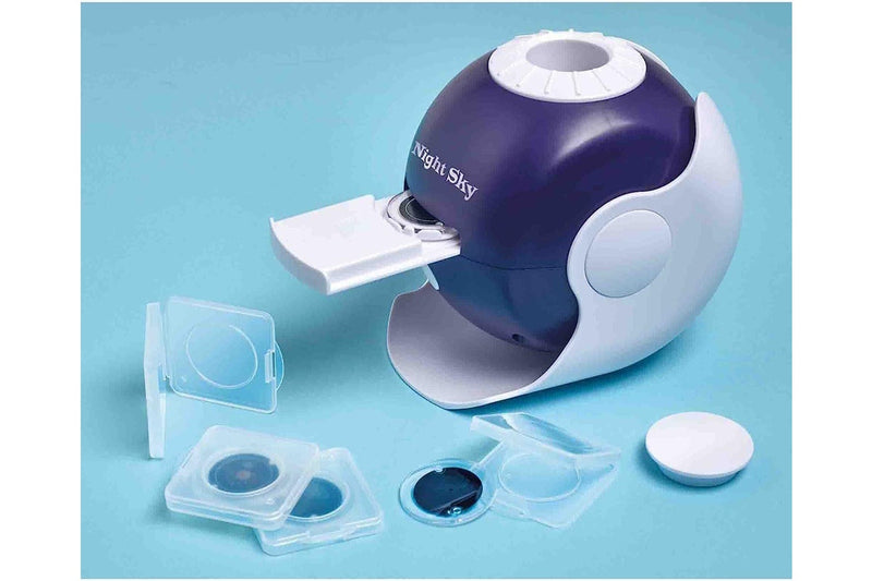 Transform your room into an outer space light show with this awe-inspiring projector! Learn about the night sky with four incredible projection discs. View the planets of the solar system, constellations, the moon or over 20,000 stars. Projects up to 3.65m wide with incredible projection quality giving ultra-sharp images. Images rotate on your wall or ceiling. With adjustable projector angle and 30-minute auto shut-off. Includes instructions and 740 × 210mm poster of the Solar System.