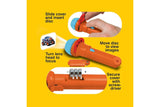 - The torch is supplied with three slide discs which include 24 colour photographs. Swap and change the slides easily by pulling back the plastic flap and inserting the chosen disc, then rotate the disc round to view the fantastic colour images which project up to one meter wide. Images are easily focused by turning the lens head. This product can be used as a normal torch without the slides in place and is great for keeping on bedside tables to give comfort to children during the night. The torch measures 11cm long and approximately 3.5cm in diameter at the widest point.