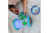 Turn the dial on the Let’s Explore™ Light & Sound Lantern to choose the light color, then press to create a matching soundscape (birds, forest with owl, crackling campfire, ocean waves, flowing stream, rain with distant thunder). Sounds play on a loop for up to 30 minutes, or press again for quiet play. Double-sided cards fit in the lantern base and help set the scene for storytelling!