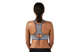 - Space dye effect with contrast trims and sleek racerback for a sporty look