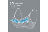 This maternity and nursing bra has two integrated breathing zones to keep you feeling cool and new quick dry technology to help balance your body temperature while offering you support and comfort.