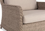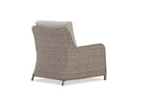 Its sturdy steel frame is woven with UV-resistant wicker, ensuring longevity and style. Equipped with plush seat and back cushions for unparalleled comfort, this chair invites guests to linger longer over meals. The angled back design promotes a relaxed feel, blending ergonomic comfort with modern aesthetics.