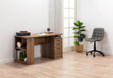 Create a work from home sanctuary with the Adams Desk. This desk has a traditional modern design with a warm timber look finish and powder coated metal handles. It features a USB charging hub and ample storage space with three drawers, two side shelves and one easy-access open shelf under the desktop. The Adams Desk includes a 2 year guarantee.