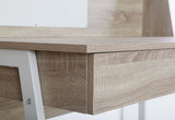 This functional desk features 2 drawers, a solid backboard and a powder coated metal frame.