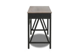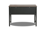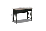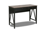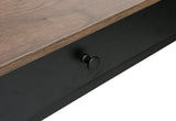 The Calderon Desk features a rich walnut-coloured finish complemented by contrasting black metal legs and handles, creating a striking and modern look.