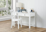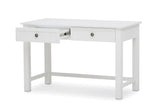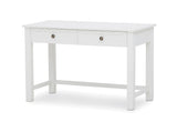 Available in a crisp white finish, this desk features modern lines and drawer handles and offers two spacious drawers for storage.