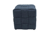 This chic square stool, featuring a rich navy color and a large fabric weave design, enhances the look of any bedroom, living room, or office.