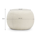 KEY FEATURES - Round Ottoman Pouf On-Trend Bouclé Wool Durable Polyester and Nylon Fabric Blend Double Stitched Seams Soft Cushioned Padding Timber Framework Plastic Floor Stoppers Colour: Cream Size: 50cm Material Composition: Polyester Nylon Textured Soft Bouclé, Padded Foam, Solid Timber Frame, Mesh Backing, Plastic Stoppers Fabric Composition: 90% Polyester 10% Nylon Frame Material: Solid Timber Seat Padding Filling: Padded Foam Fabric: Polyester Nylon Textured Soft Bouclé Web Size: 1 Seater Product Code: 10005159 Assembled Product Dimensions Width: 50 cm Depth: 50 cm Height: 35 cm Weight: 7 kg This product consists of 1 box or component Box / Component 1:   Width: 57 cm Depth: 57 cm Height: 38 cm Weight: 9 kg Assembly No Assembly Required