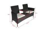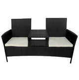 2-Seater Garden Sofa with Tea Table Poly Rattan Black vidaXL