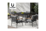 Livsip 4 Seater Outdoor Dining Set Black Table and Chairs