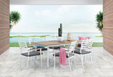 Designed with white rust-resistant aluminium frames, the outdoor dining setting with its 1800L dining table and 6 accompanying, stackable chairs will enhance not only your outdoor space, but the way you entertain and enjoy mealtimes.