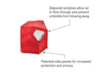- Zippered windows allow air to flow through and prevent umbrella from blowing away