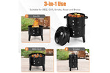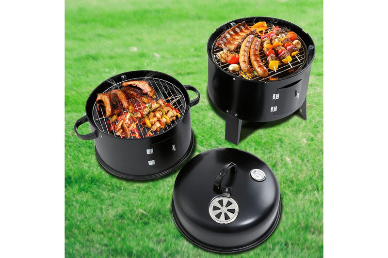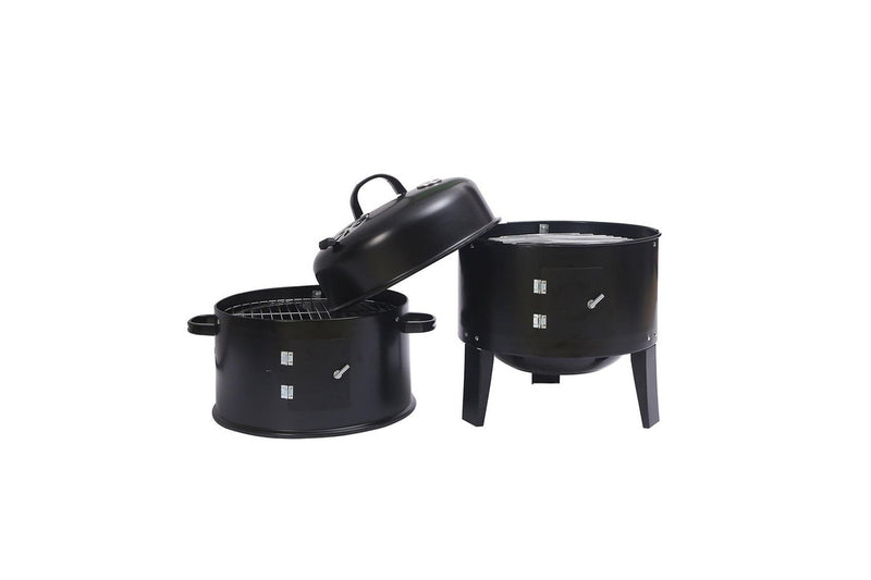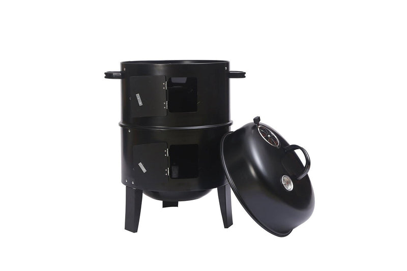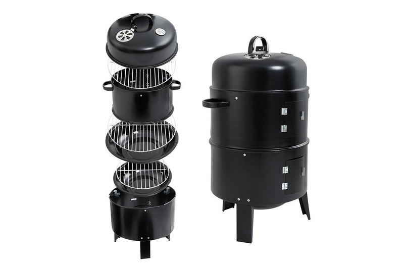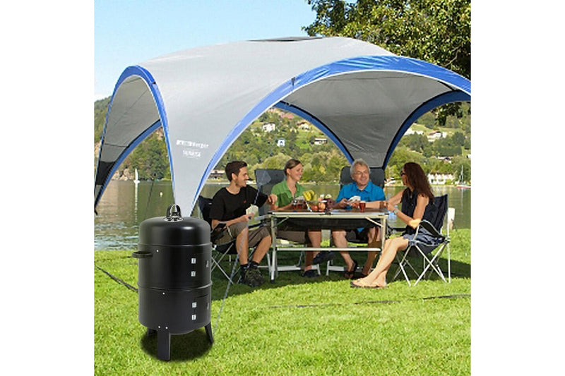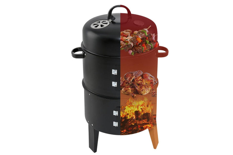 3in1 Portable Charcoal BBQ Vertical Smoker Roaster Grill Steel Water Steamer