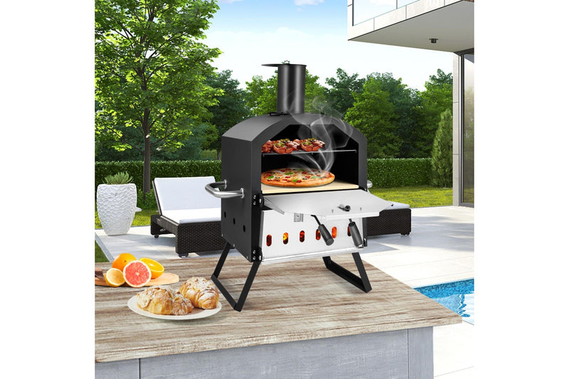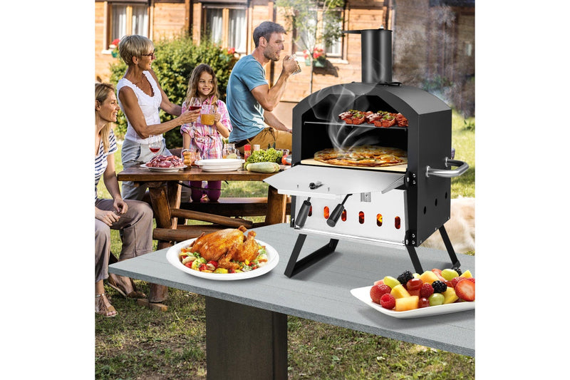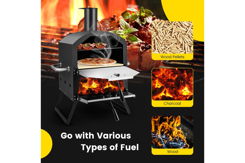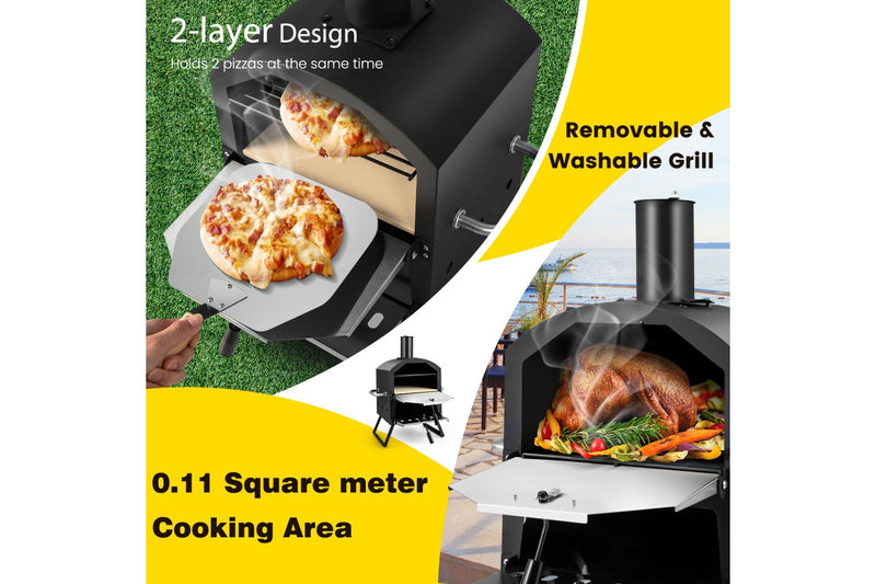 Costway 2-Layer Pizza Oven Portable BBQ Grill Pizza Maker Charcoal Wood Fired w/Waterproof Cover&Pizza Stone