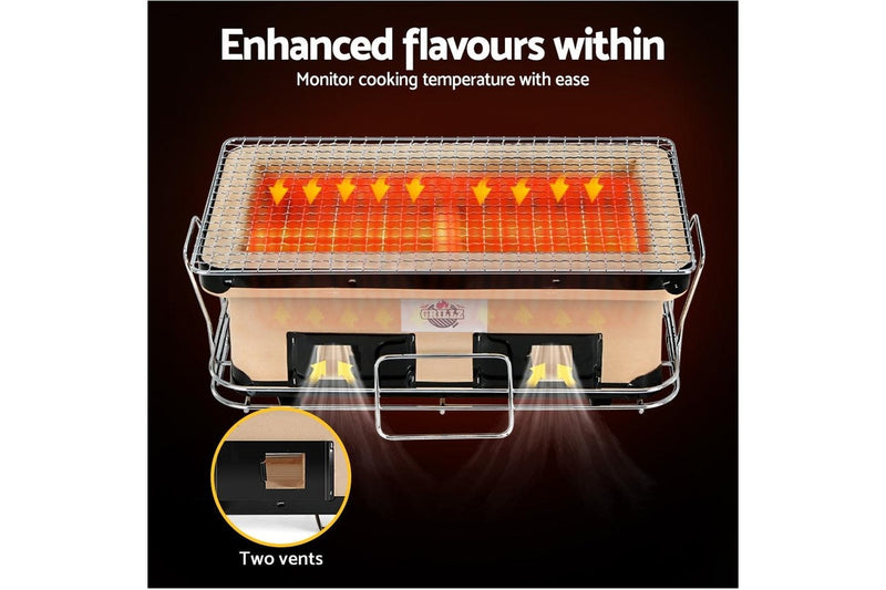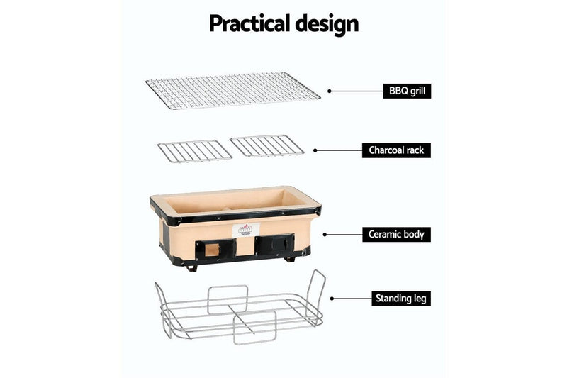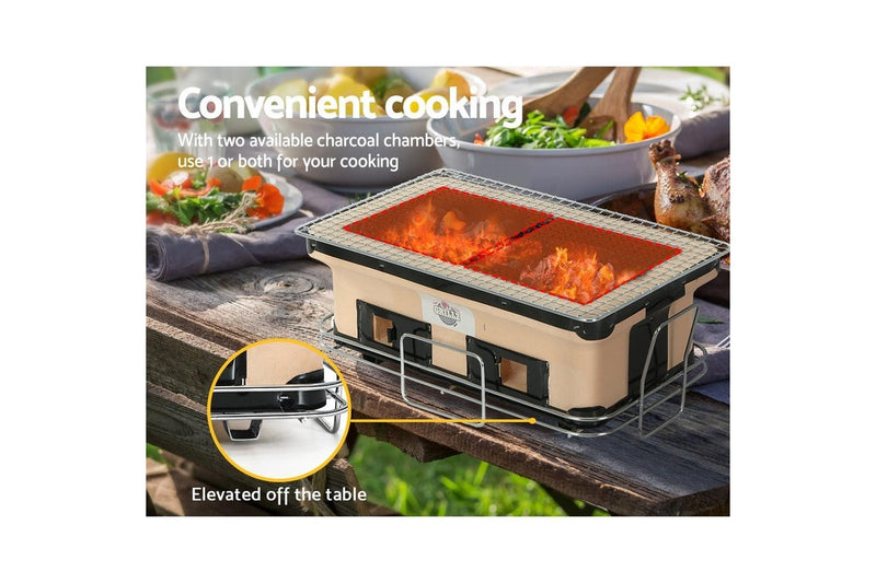 A Japanese – style grilled feast is just moments away thanks to the Grillz Ceramic Hibachi BBQ Grill. The BBQ is made from diatomaceous earth ceramic for great heat retention and insulation, and the chrome – plated stainless – steel grill rack makes it easy to cook up a storm – and clean up afterwards. It features two charcoal chambers with air vents that you can use individually or together for delicious, hot, smokey grilled meats and vegetables. Its sturdy metal legs keep it elevated, allowing for better ventilation and avoiding damage to the surface below. Take it wherever you need a bit of grilling, whether to your backyard summer celebration, beach picnic, or camping trip. Wherever you go, whatever you do, you’ll be glad you brought along your Grillz Ceramic Hibachi BBQ Grill.