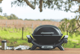 Sizzle up your next family barbecue with the compact Weber Baby Q1000N LP Midnight Black portable gas BBQ. This lightweight, front-facing grill is perfect for cooking on the go thanks to its portable size and easy setup.