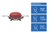 Featuring a compact 730mm height, 1260mm width and 610mm depth, the Flame Red easily rolls from patio to poolside. Weighing just 14.5kg, the Flame Red is lightweight for transporting to park BBQs or camping trips. Enjoy convenient ignition and monitoring of fuel levels through the easy-start electronic ignition and handy gauge.
