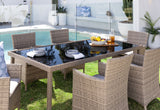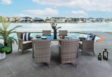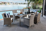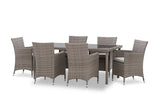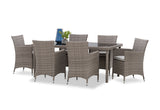 Featuring a tempered glass top table and 6 contoured tub chairs with seat cushions, the Barbosa 7 Piece Outdoor Dining Setting is all you need to create the perfect outdoor dining sanctuary.