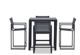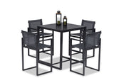 The Bayview Bar Table is available in a chic charcoal colour and boasts a slatted table top, which not only enhances its aesthetic appeal but also provides practicality. The slatted design allows for proper drainage, making it ideal for outdoor use.