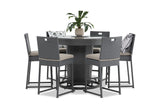 The Coldie Outdoor 7 Piece Bar Setting is an entertainer's delight. Featuring a stainless steel ice bucket in the centre of the glass top table, having a 'cold one' at hand is more convenient than ever. Perfect for parties, the Coldie bar setting will be the centre of attention and have everyone comfortable for hours on end. The dark grey UV resistant wicker makes this setting suitable for outdoor weather conditions. The sturdy aluminium frame and added footrests on the bar stools and table add extra comfort. Furniture cover included. Stools: 1190H x 520W x 610D Table: 1080H x 1200Dia CAUTION Bucket can be heavy when full, please take care when lifting in/out of table. Care Instructions for Tray: * Wipe clean with cloth or paper towel * Do not use abrasive cleaners or bleach * If dirty, clean with mild soapy water