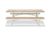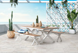 Bringing a modern twist to the classic white outdoor picnic setting, the on-trend cross leg design and low-maintenance Weathergrain timber-look tabletop ensures your new outdoor setting looks great and stays great for many years to come.