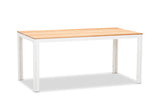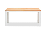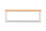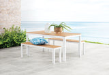 Comprised of 1 x dining table and 2 x bench seats, it is made of sturdy aluminium frame in crisp white with a timber top and is suitable for any outdoor design and landscaping theme.