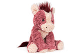 Cozys are cuddly companions made from soft, textured fabrics that feel as familiar as hugging an old friend! This playful horse sports soft pink and red fur, floppy limbs built with a slightly under-stuffed body that makes every squeeze feel even sweeter, and a silky red tail and mane. Its premium, high-pile fur is specially rippled and textured to make holding on during play easier and make big hugs feel even sweeter. This Cozy horse plush is perfect for snuggle sessions and a make perfect companion for kids!