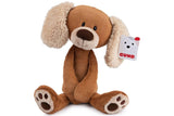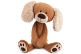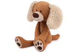 - Stuffed puppy with super-soft light brown plush fur and fluffy, floppy cream-coloured ears