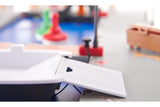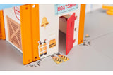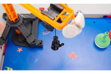 Supply station for ships – There is always work to be done at the SIKUWORLD landing stage. With its individual parts, the landing stage can be built in multiple ways, and customised using stickers. Boats can be launched into the water and drawn out via the ramp. The muffled boom of the ship’s horn signals the end of the lunch break for the dockworkers. The fish and chips at the snack stall are swallowed quickly, and the workboat is already being moored. It takes just a few skilled actions to securely tie the boat to the bitts on the quay wall. The gantry crane with the travelling trolley starts to move.