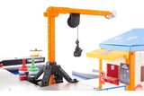 The cargo on the workboat has to be discharged, as the dockworkers call it, because the captain wants to cast off again. The SIKUWORLD landing stage consists of the workboat, buoys, two flags, snack stall, and a landing stage with entries and exits, two plastic panels in a blue design, crane, and crates. The crates can be opened, filled, and emptied. The SIKUWORLD landing stage can be played with on its own, but it is also the perfect addition to the SIKUWORLD Water World and the SIKUWORLD container ship.