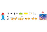 Ignite young imaginations with this Hape Space Adventure Play Set. Explore the cosmos with astronauts, vehicles and a foldable space shuttle in an interactive glow-in-the-dark world.