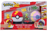 The Pokémon Surprise Attack Game is easy to pick up and play! Just choose the Pokémon you want to battle with, choose an attack disk, load both into the Surprise Attack Poké Ball, and SLAM down on the button to spin the Poké Ball and reveal your Pokémon and its attack! Play solo with Training rules or challenge your friends to battles with Junior and Master trainer rules!