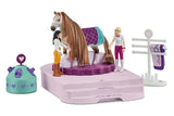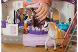 Ever since Mr. Mitchell and Mrs. Lopez-Mitchell opened the Horse Beauty Salon in Springdale City, the city’s equestrians have gone gaga over trendy hairstyles for their horses. The six-piece playset is part of the new Sofia’s Beauties line from Schleich Horse Club. It includes a salon with turntable, two toy horses with brushable manes and tails, two posable characters, and even a Maltipu puppy figure. Horse-y fun just got glamorous!
