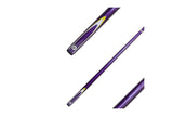 The Formula Sports Composite Purple 2pc Cue is a vivid purple colour with crisscrossed pattern and finished with a white and yellow arch on the butt.