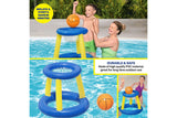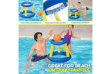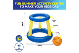 Creating hours of fun in the summer sun is this inflatable basketball hoop and ball pool game. The set contains its nylon net and ball. Made of durable PVC that is UV resistant, this is a wonderful activity for the family to enjoy.