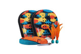 The two player game you never knew you needed! Introducing Battlebird! A two player game featuring VOLI hand paddles, a new fast spinning birdie, and ground court straps. Score points by hitting the birdie into your opponents square. Play in the backyard, park, or beach.Features:Court straps and stakes (square size 2×2m / 6.6×6.6 ft)