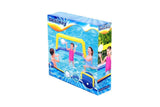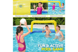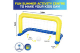 Creating hours of fun in the summer sun is this inflatable water polo pool game set. The set contains its nylon net and ball. Made of durable PVC that is UV resistant, this is a wonderful activity for the family to enjoy.