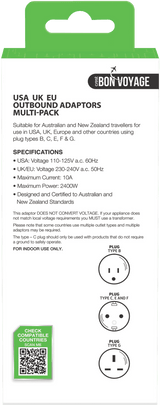 | What's In The Box: | 3 Travel Adapters in 1 pack |