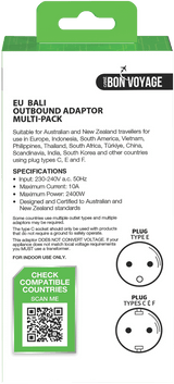 Bon Voyage Travel Adaptor Australia to Europe (2 Pack)