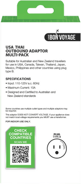 Bon Voyage Travel Adaptor Australia to USA (2 Pack)