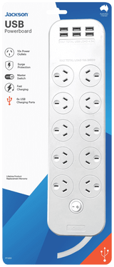 Jackson 10 Way Surge Powerboard 6x USB Ports