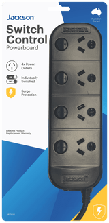 | Additional Features: | Black colour, 1 metre long lead, 4 outlets with individual switches |