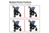The Navigator has an easy, one-hand folding system so you can store it even while carrying your baby. The seat can be reclined all the way down to keep your little one comfy while sleeping. There is also an adjustable hood and footrest, as well as a peek-a-boo window, removable snack tray and spacious storage basket.
