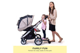 The Veebee EZ Rider clips to almost any buggy or pram, instantly converting it into a two-seater. This stroller attachment can be used with or without the seat, allowing your toddler to sit or stand for the ride. The ultimate combination of practicality and fun!