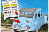 - Accessories: 1 Citroen 2CV, 2 milk cans, 1 bag, 1 hat, 1 police cap, 2 sticker sheets, 1 pair of front headlights.