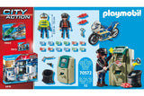 • 1 policeman, 1 villain, 1 police motorcycle, 1 ATM, 1 bag, 1 police helmet,